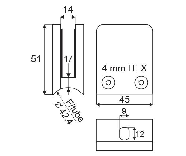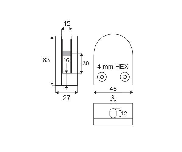 Držák skleněných tabulí je určen pro balkóny, zábradlí a police v interiérech s uchycením pro trubkový sloupek o ø 45 mm.