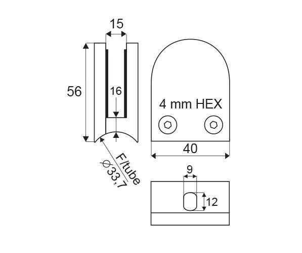 Nerezový držák skleněných tabulí je určen pro balkóny, zábradlí a police v interiérech i exteriérech s uchycením pro trubkový sloupek o ø 33,7 mm s možností fixace skla pomocí přídavných čepů (nejsou součástí balení). Vyroben z nerez oceli 316.
