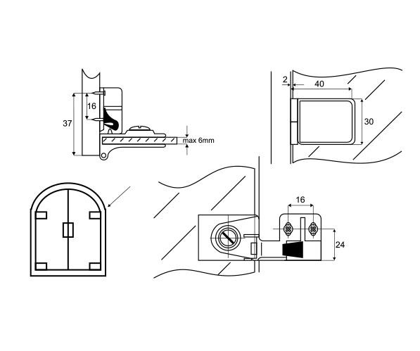 Určen pro tloušťku skla 6-10,76 mm. Vymezení tloušťky skla se provádí pomocí plastových podložek, které nejsou součástí balení a je nutno je objednat zvlášť.