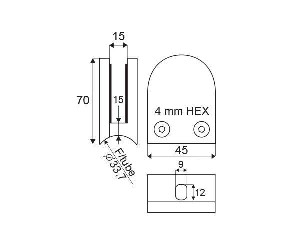 Nerezový držák skleněných tabulí je určen pro balkóny, zábradlí a police v interiérech i exteriérech s uchycením pro trubkový sloupek o ø 33,7 mm s možností fixace skla pomocí přídavných čepů (nejsou součástí balení). Vyroben z nerez oceli 316.