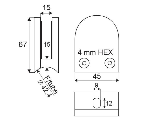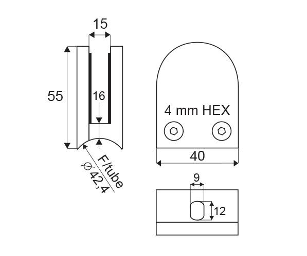 Nerezový držák skleněných tabulí je určen pro balkóny, zábradlí a police v interiérech i exteriérech s uchycením pro trubkový sloupek o ø 42,4 mm s možností fixace skla pomocí přídavných čepů (nejsou součástí balení). Vyroben z nerez oceli 316.