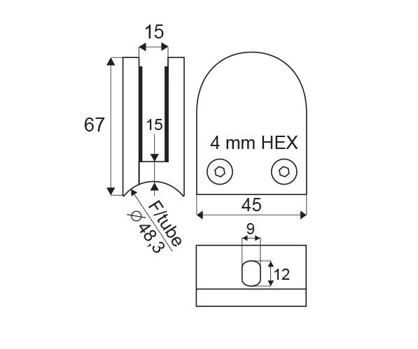 Držák skleněných tabulí ovál tube L ø 48,3 mm