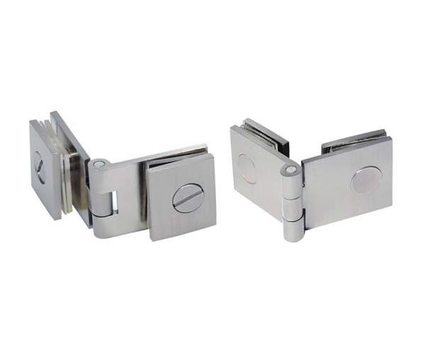 Závěs je určen pro skleněné vložené dveře bez nutnosti vrtání otvoru do skla a je dodáván v párech (horní a spodní).