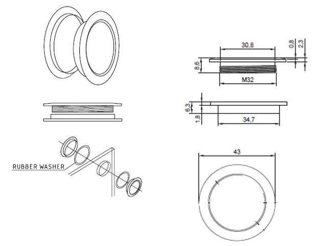 Úchytka je určena pro skleněné posuvné dveře s nutností vrtání otvoru do skla o ø 35 mm.