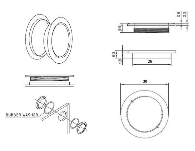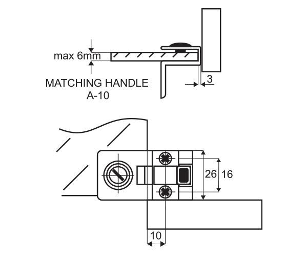 Úchytka je určena pro skleněné posuvné dveře s nutností vrtání otvoru do skla o ø26 mm.