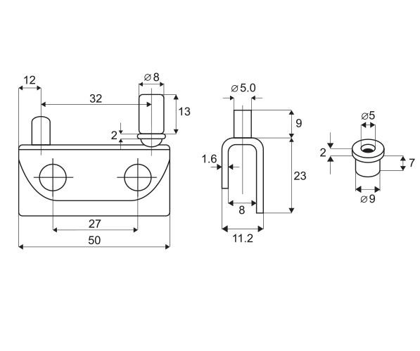 Obsah balení:  závěs horní, závěs spodní, fixační šrouby, plastové pouzdra pro čep