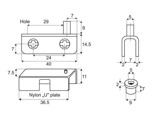 Obsah balení: závěs, upevňovací šrouby, plastové podložky