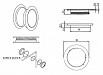 Obsah balení: závěs horní, závěs spodní, fixační šrouby, kovová pouzdra pro čep, tlumící podložka